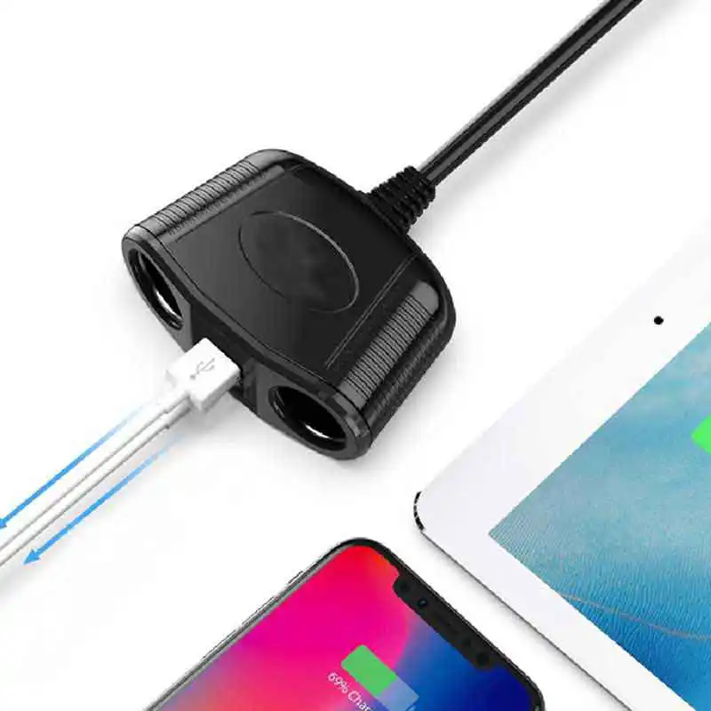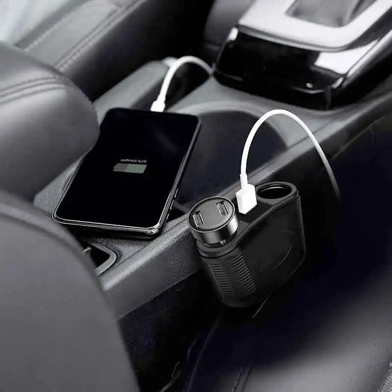 · Cumas Muirearú 4 Bhealach:Leathnaíonn soicéad níos éadroime toitíní amháin isteach i dhá asraon cumhachta gluaisteán agus dhá chalafort muirir USB (a thacaíonn le muirearú tapa QC 3.0 agus PD 25W).