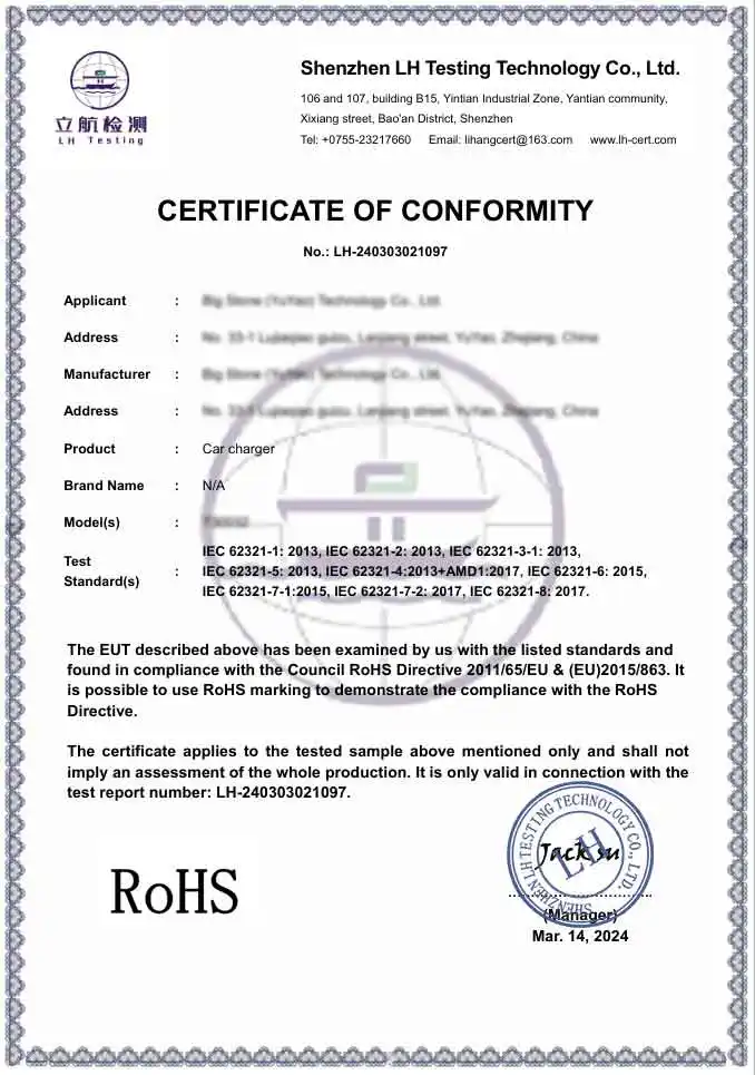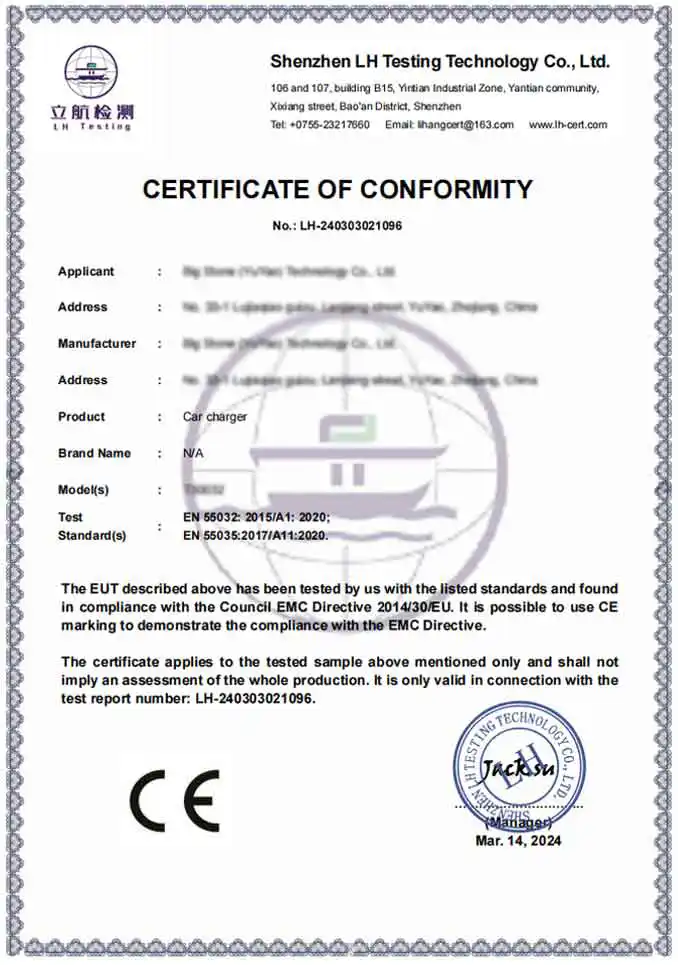 A: Mar mhonarcha gairmiúil, tá ár gcuid táirgí ag cloí go hiomlán le caighdeáin idirnáisiúnta sábháilteachta agus comhshaoil. Soláthraímid táirgí deimhnithe CE agus RoHS. Ina theannta sin, tá ár n-áis táirgthe deimhnithe ag BSCI agus ISO, ag cinntiú go gcomhlíonann ár gCuibheoirí Car Charger na caighdeáin theicniúla agus eiticiúla dochta a éilíonn brandaí domhanda préimhe.