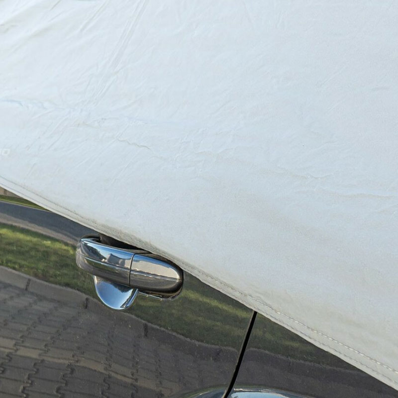 Ideal le haghaidhpáirceáil lasmuigh, Cosnaíonn an clúdach leath charr seo go héifeachtach andíon, gaothscáth, agus fuinneogana sedans, SUVs, agus an chuid is mó feithiclí paisinéirí.