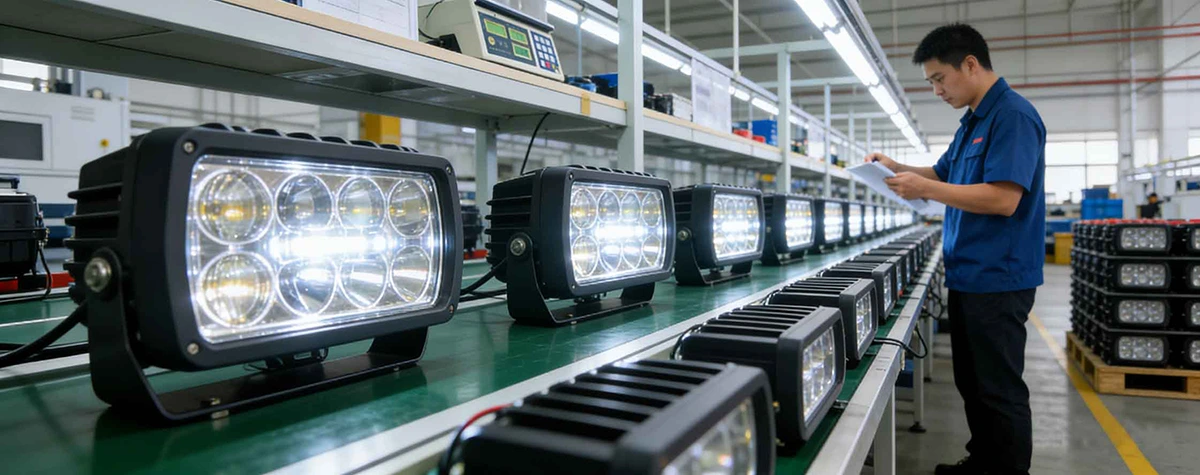 Ag Déantúsaíocht Far East, is í an cháilíocht ár bpríomhthosaíocht. Déantar dianthástáil ar gach baisc táirgeachta, lena n-áirítear fíorú rátáil IP uiscedhíonach, tástálacha friotaíocht creathadh, agus seiceálacha cobhsaíochta lonrúla flosc. Déantar iniúchadh ar gach solas oibre LED chun cruinneas tríthoiseach agus comhsheasmhacht ábhair a chinntiú roimh an loingsiú idirnáisiúnta.