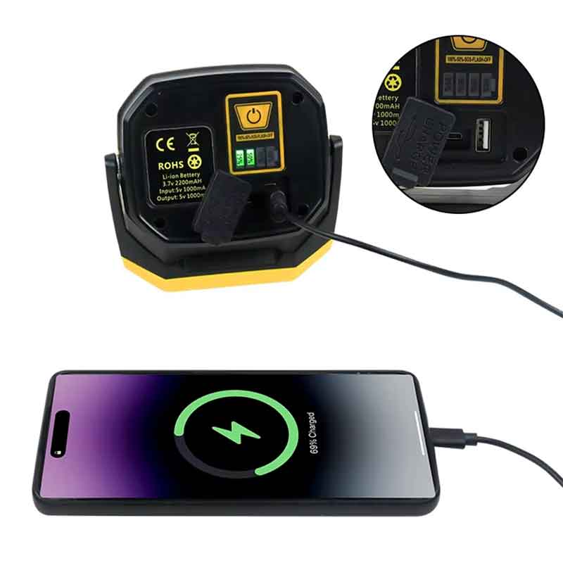 A: Tá. Tacaíonn an calafort USB-C le hionchur (an solas oibre a mhuirearú) agus aschur (ag gníomhú mar bhanc cumhachta chun gléasanna soghluaiste a mhuirearú).